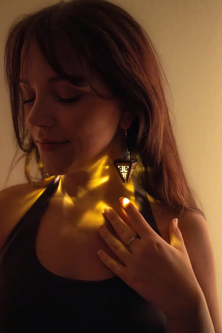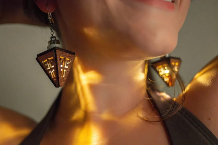 워싱턴에 거주하는 공예가 패트릭 캐시디는 LED 조명을 통해 빛나는 레이저 컷 나무 제품인 "레이저 커팅 나무귀걸이(Light Up Wood Earrings)"을 만듭니다. 이 나무귀걸이는 배터리로 작동하며, 나사를 조여서 켜고 끌 수 있습니다. 드롭형 귀걸이는 LR41 교체형 배터리로 구동되는 LED를 내장하여 착용자를 밝게 비춥니다. 패트릭 캐시디는 기본적인 앰버 빛 외에도 파란색, 분홍색, 빨간색 등의 커스터마이즈된 빛을 제공하여 귀걸이를 다양하게 선택할 수 있게 했습니다.
